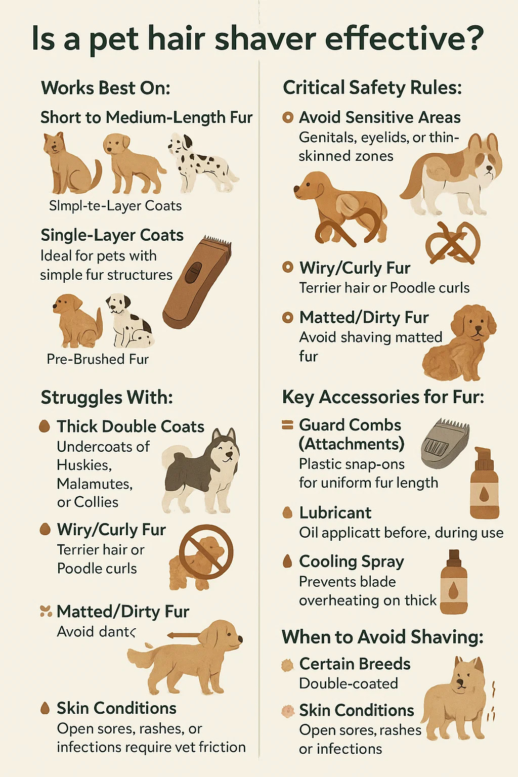 بله ، الف ریش تراش مو (همچنین به آن Clippers یا Trimmers حیوانات خانگی گفته می شود) به طور خاص برای کار روی خز حیوانات طراحی شده است ، اما اثربخشی بستگی به نوع خز ، کیفیت ابزار و تکنیک دارد. در زیر یک تفکیک دقیق وجود دارد: