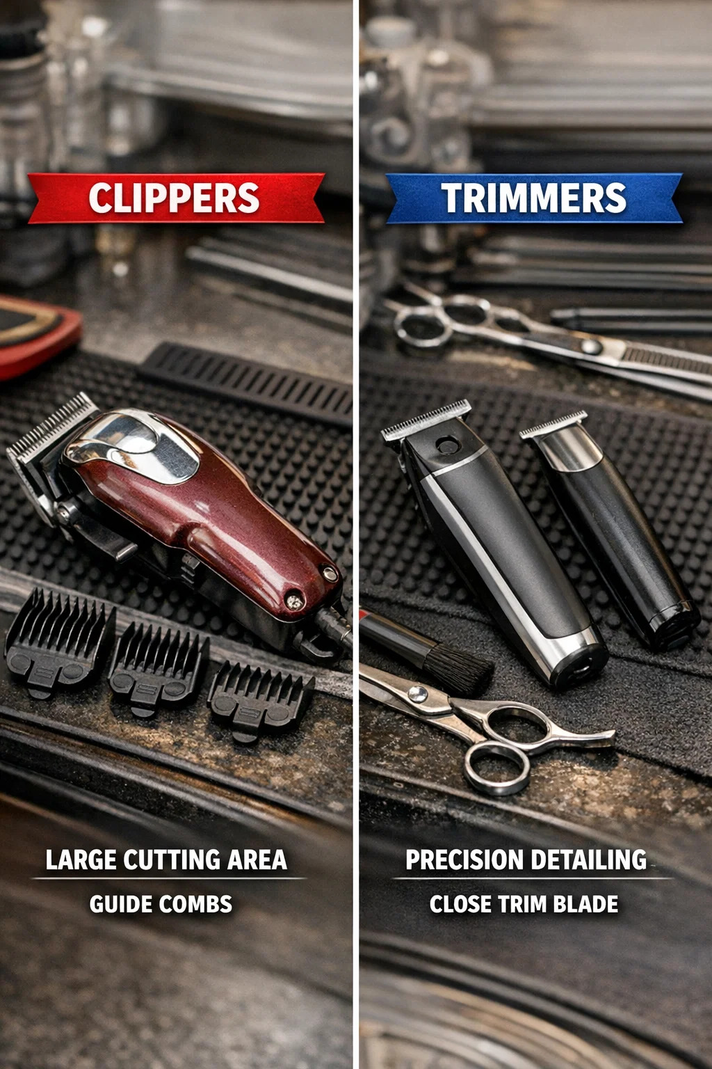 تریمرها: معمولاً برای کار با یک دست سبکتر و بسیار انعطافپذیر هستند و مانور دادن به اطراف گوشها یا خطوط برش پشت سر را آسانتر میکنند. در حالی که قدرت آنها نیز خوب است، اگر از آنها برای کوتاه کردن یک سر کامل موهای ضخیم استفاده شود، دچار مشکل می شوند.