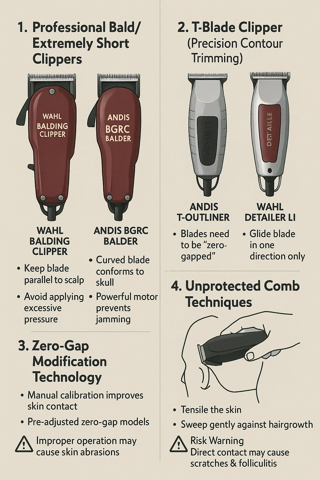 سناریوهای مناسب: فقط برای نواحی با خطوط موی صاف، ریزش مو و غیره یا افراد با تجربه که به طاسی تمام سر ظاهر میشوند توصیه میشود.